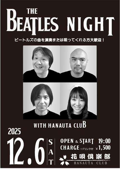 【出演者】ビートルズの曲を演奏または唄ってくれる方募集中!!!