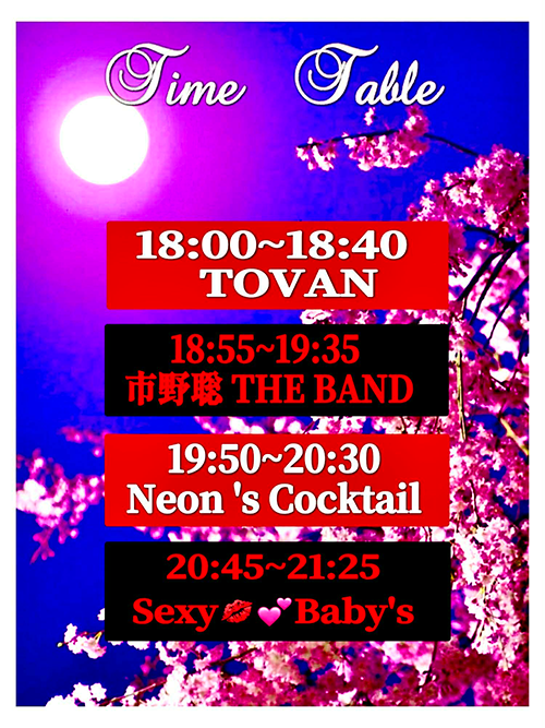 【出演者】TOVAN/市野聡 THE BAND/Neon's Cocktail/Sexy Baby's